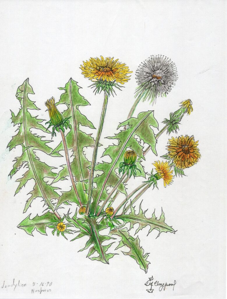 Dandelions were introduced from Europe by European settlers back in the mid-1600s, but since then have been used extensively by both early settlers and Native Americans as food, and the medicinal treatment for liver, kidney and digestive ailments. It is also used as a diuretic. All parts are edible, rich in nutrients and antioxidants and are eaten raw or cooked. They are easily recognized for their bright yellow blossoms and are found in a variety of environments and any soil types. Livestock grazed on dandelions as a food source.