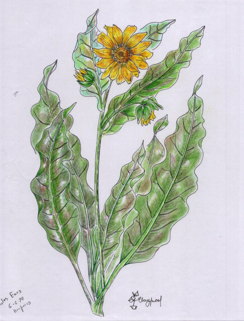 This evergreen shrub has shiny green leaves, pinkish blossoms and bright red edible, but tasteless berries. It blooms from May through June and grows on rocky and bare ground throughout the Southwest. The bark is a reddish brown and can grow to eight to ten inches and forms mats. The berries were a food source for Native Americans and wildlife and remained on the branches through winter. The plant was medicinal and also used as a smoking tobacco. The leaves were used as a treatment for kidney and bladder problems and still used today as a medicinal herb.21. Mules Ears (Wyethia arizonica) Sunflower or Asteraceae Family