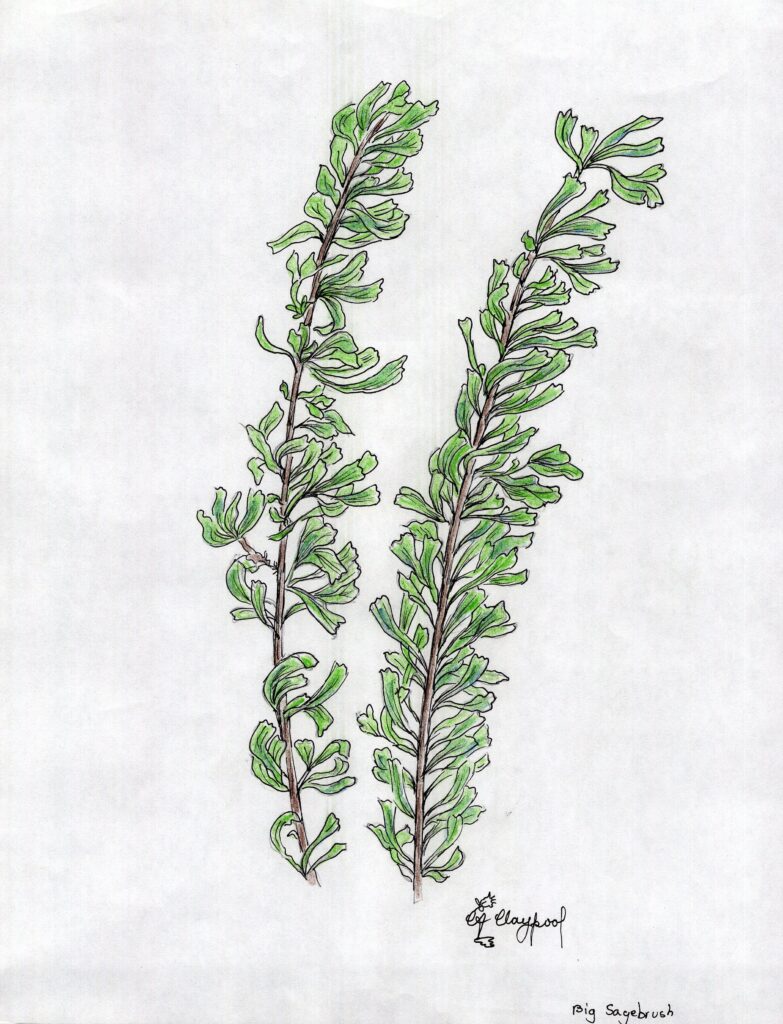 This plant thrives in a desert environment and there’s a cluster of bright yellow flower spikes over bluish green foliage. It can grow to be thirty to sixty inches tall and blooms from late spring to early summer. Its habitat is dry prairies and desert scrubs. Native Americans used the leaves as a potherb when boiled in two changes of water, but toxic if eaten raw, as the plant gathers the mineral selenium from the desert soil. The root was crushed to a pulp and used as a poultice for toothache and painful gums and placed on the ear or throat to relieve pain. The flowers have four petals, four sepals and six stamens.29. Big Sagebrush (Artemisia tridentata) Sunflower Family
