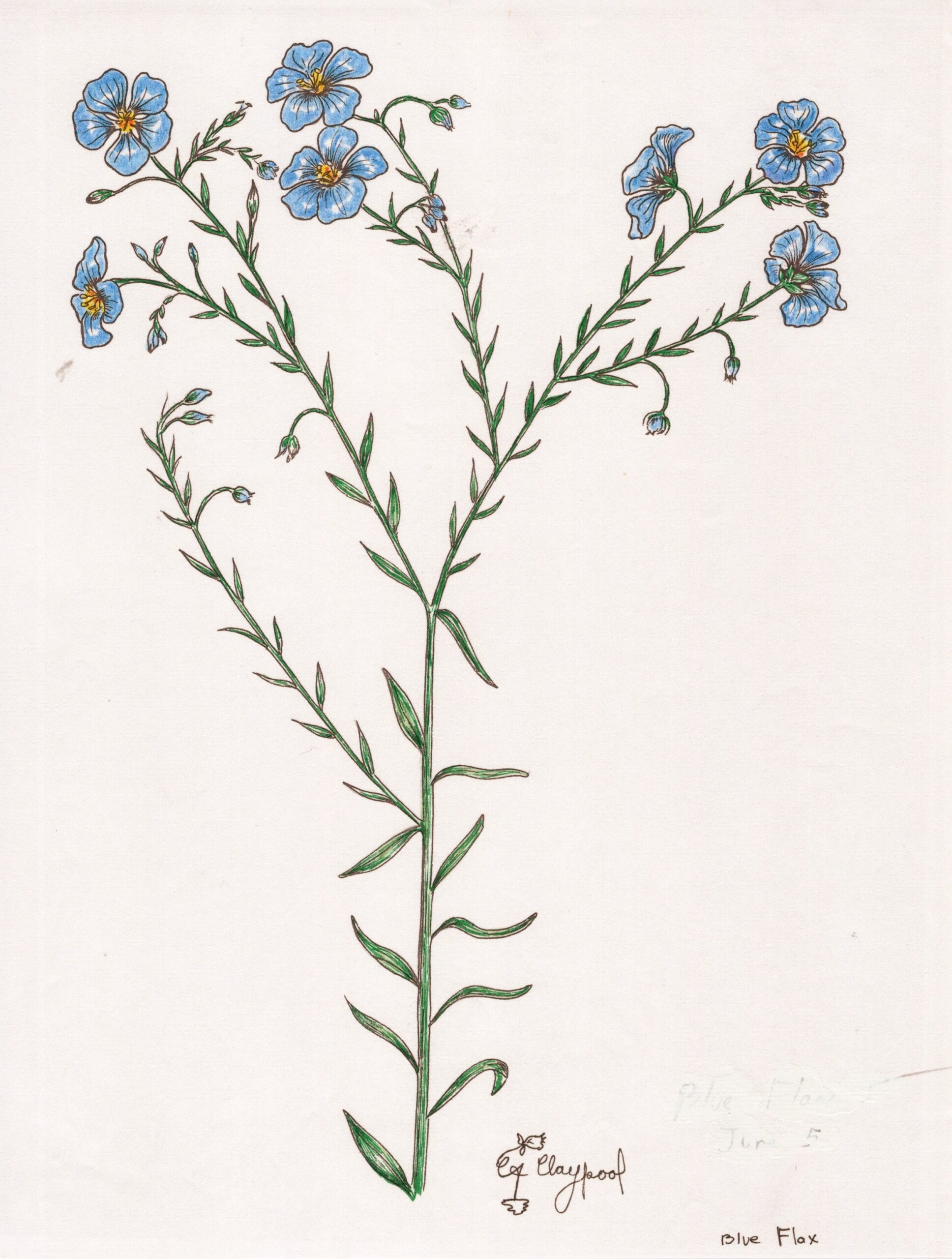 This beautiful flowering plant is a winter annual which grows to one foot tall and blooms in March, April, May and June. The large four petal flowers are either yellow or white and turn to a reddish color with age. The young leaves are edible cooked and Native Americans used the boiled roots as food or cough syrups, and the shoots are eaten raw. The seed oil is still used today as a woman’s tonic. The whole plant could be used as a poultice for bruises and wounds.12. Blue or Common Flax (Linum lewisii) Flax Family
