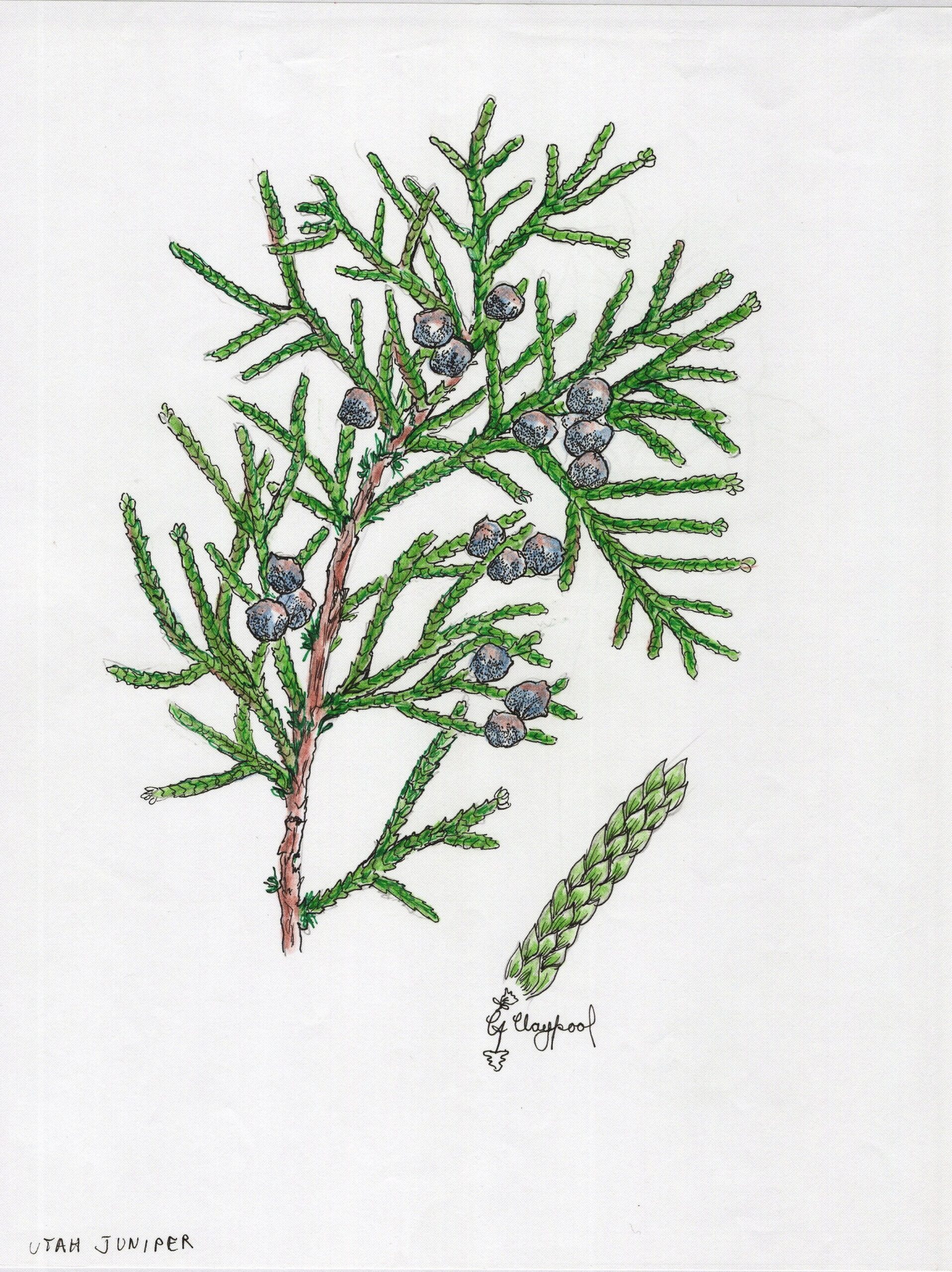 This stocky plant grows one to two and a half feet tall and has whorls of branches at the joints. It survives in swamps, fields, woods, roadsides and riparian habitats and can be found growing throughout the southwest. Native Americans used it as a medicinal tea and as a diuretic and also a scouring utensil. Only the young shoots can be eaten raw or steamed for use as a wild vegetable. Today it is still used as a diuretic and also a bone strengthener for its silicon properties. It would have been edible to sheep and domestic livestock.16. Utah Juniper (Juniperus osteosperma) Cypress Family