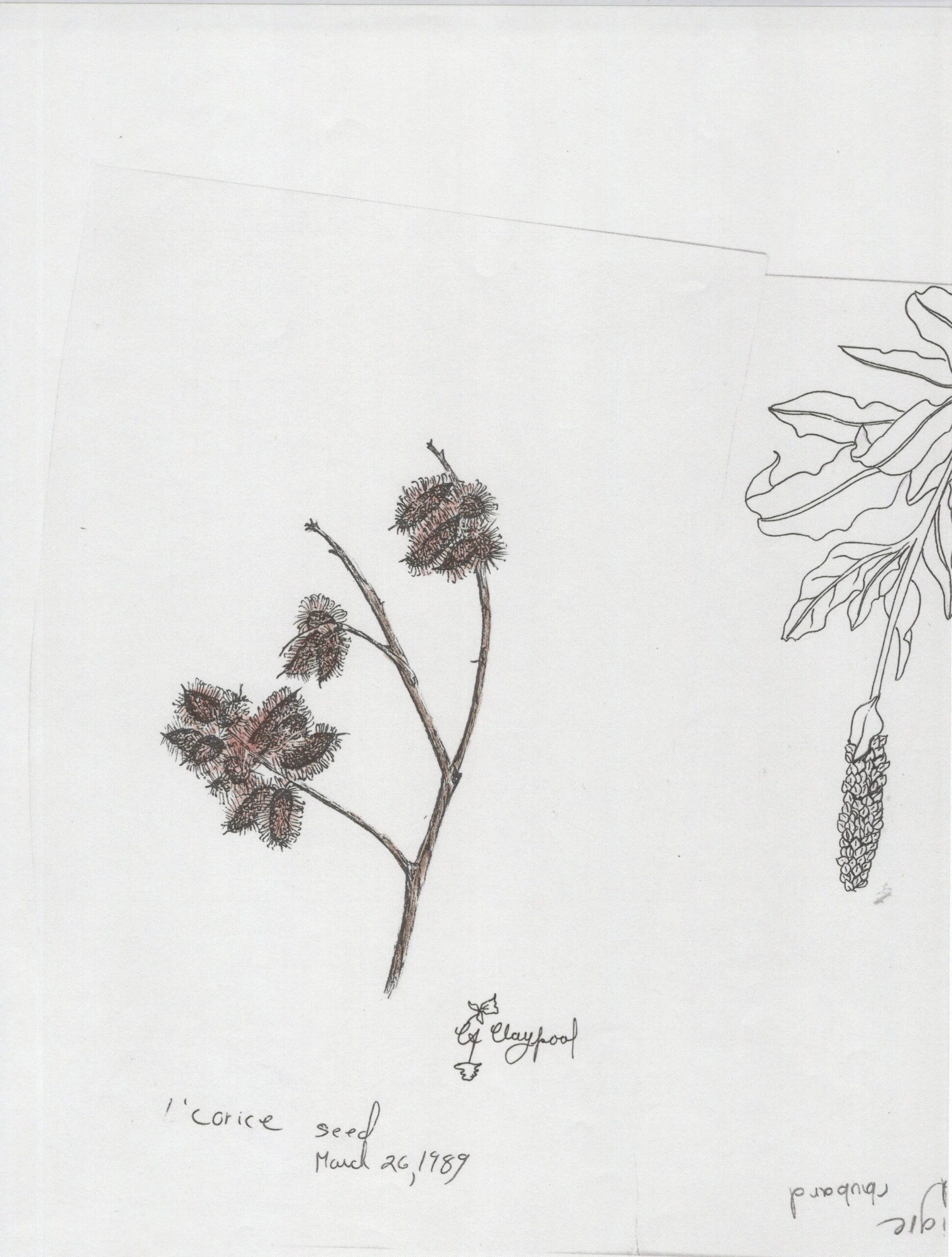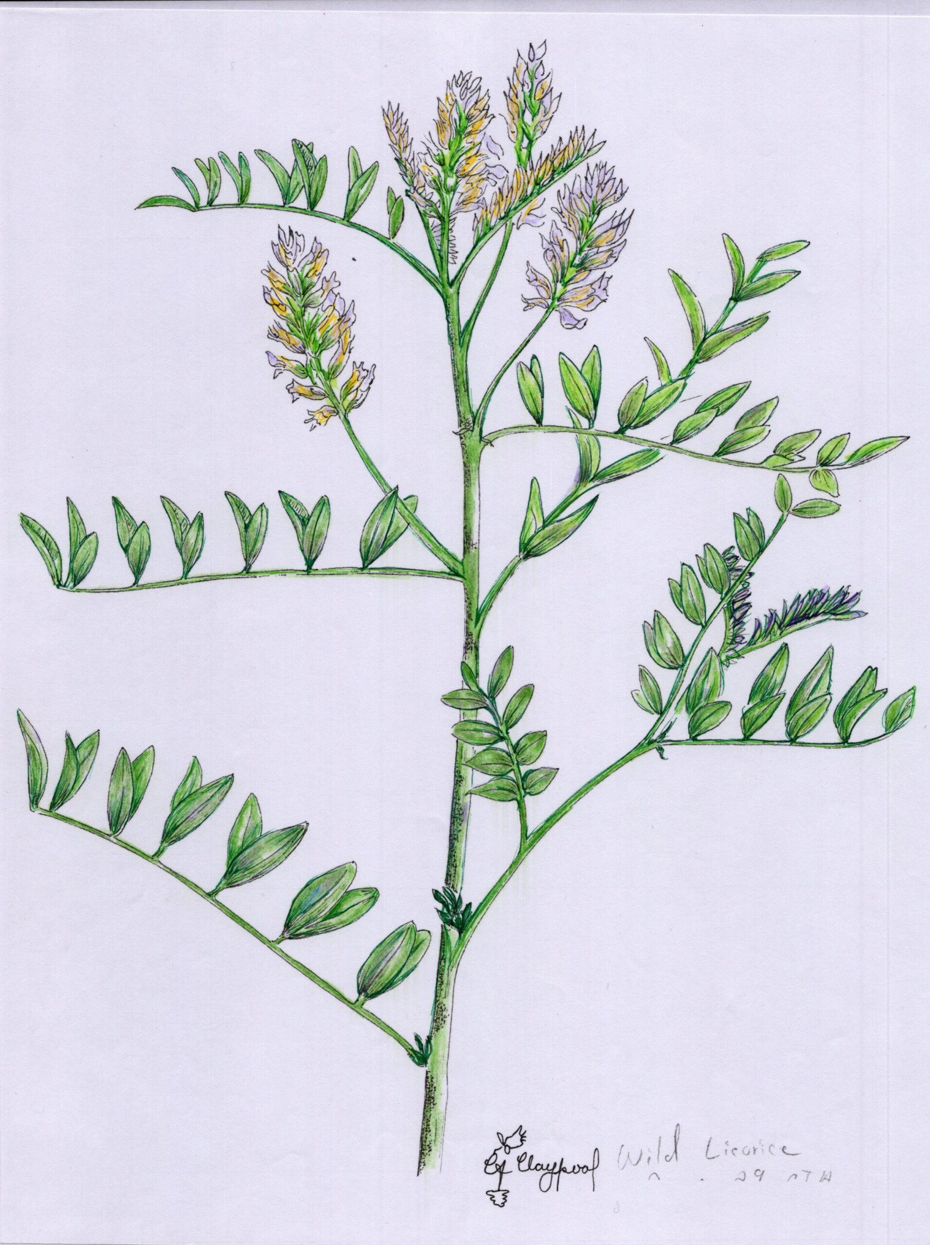 Juniper which is common in the southwest grows ten to thirty feet tall on flats, slopes and mesas in poor dry soil. The trunk is short and berries are reddish brown to blue gray in color. The tree is mostly medicinal with the twigs, needles and cones used for medicinal teas for various ailments. Berries were boiled or dried for food although having a bitter taste. The seeds were used for beads and decoration.17a. Wild Licorice (Glycyrrhiza Lepidota) Legume Family
